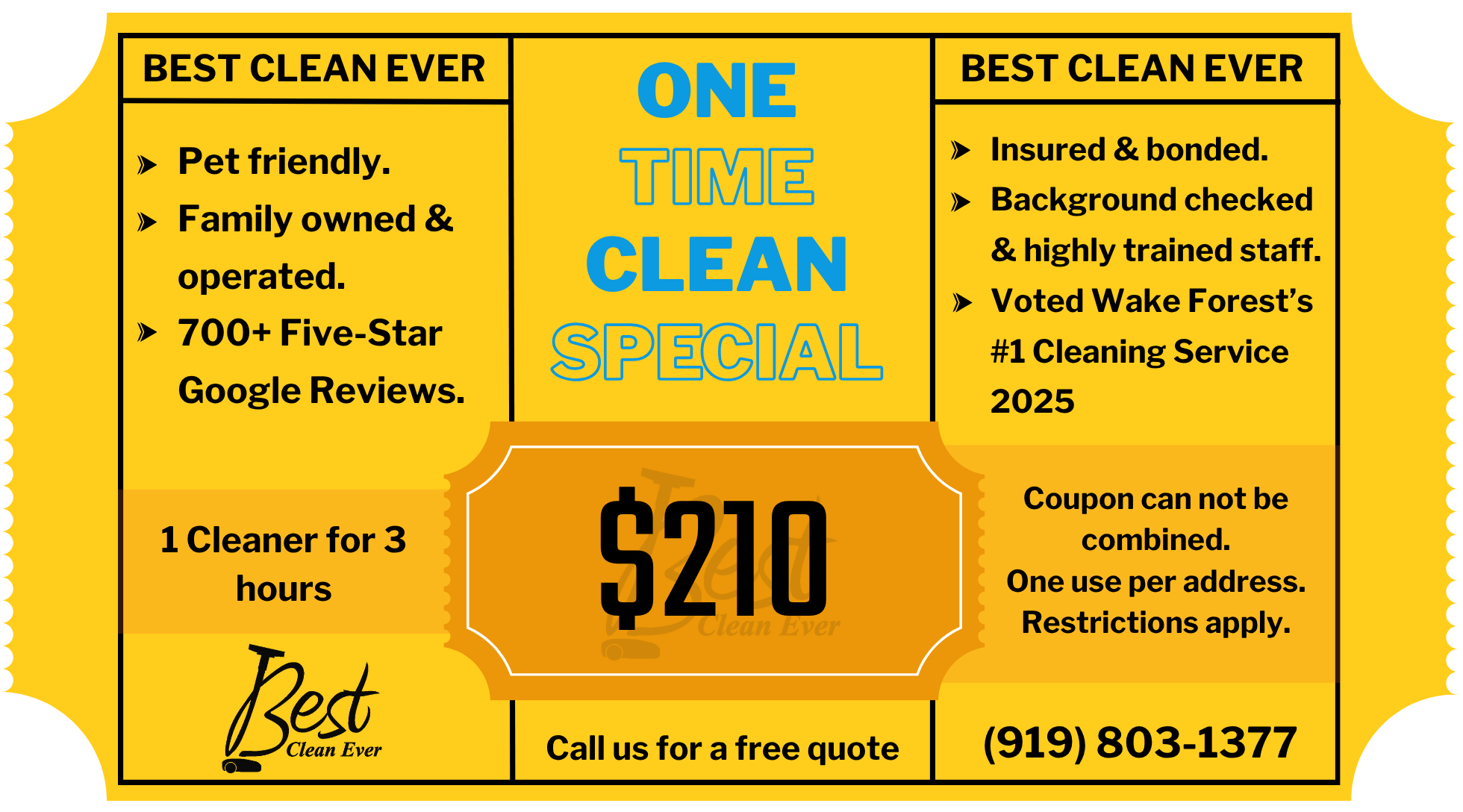 Enjoy a one-time 3-hour professional cleaning for just $210! Perfect for giving your home a detailed refresh, handled by our insured and bonded professional team using safe, everyday cleaning products.